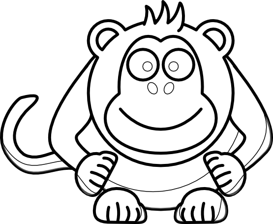 Cute monkey clip art black and white: Cartoon Monkey Black White