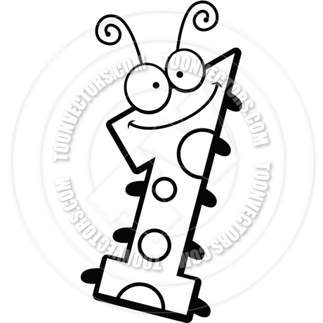 Numbers black and white: Cartoon Number One Bug (Black