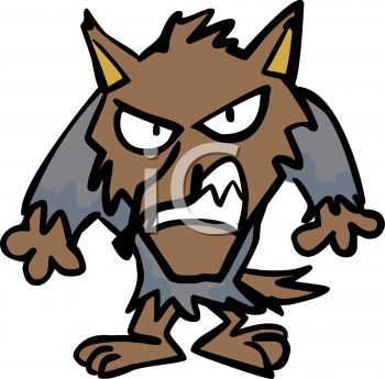 Halloween werewolf clipart: Cartoon of a Snarling Werewolf