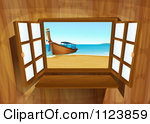 Open window at night clipart: Cartoon Of An Open Window And