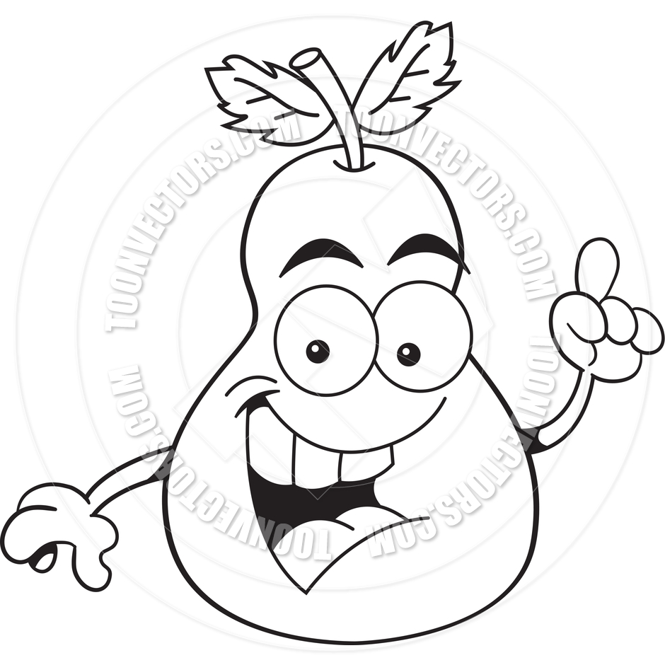 Pear clipart black and white: Cartoon Pear with an Idea