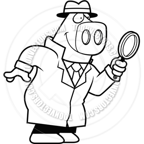 Detective black and white: Cartoon Pig Detective (Black