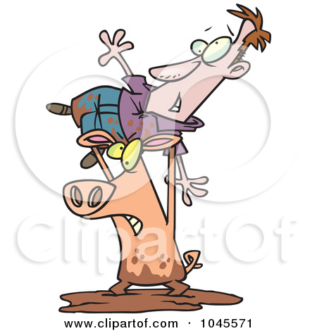 Pig in mud clipart: Cartoon Pig Wrestling A Man In