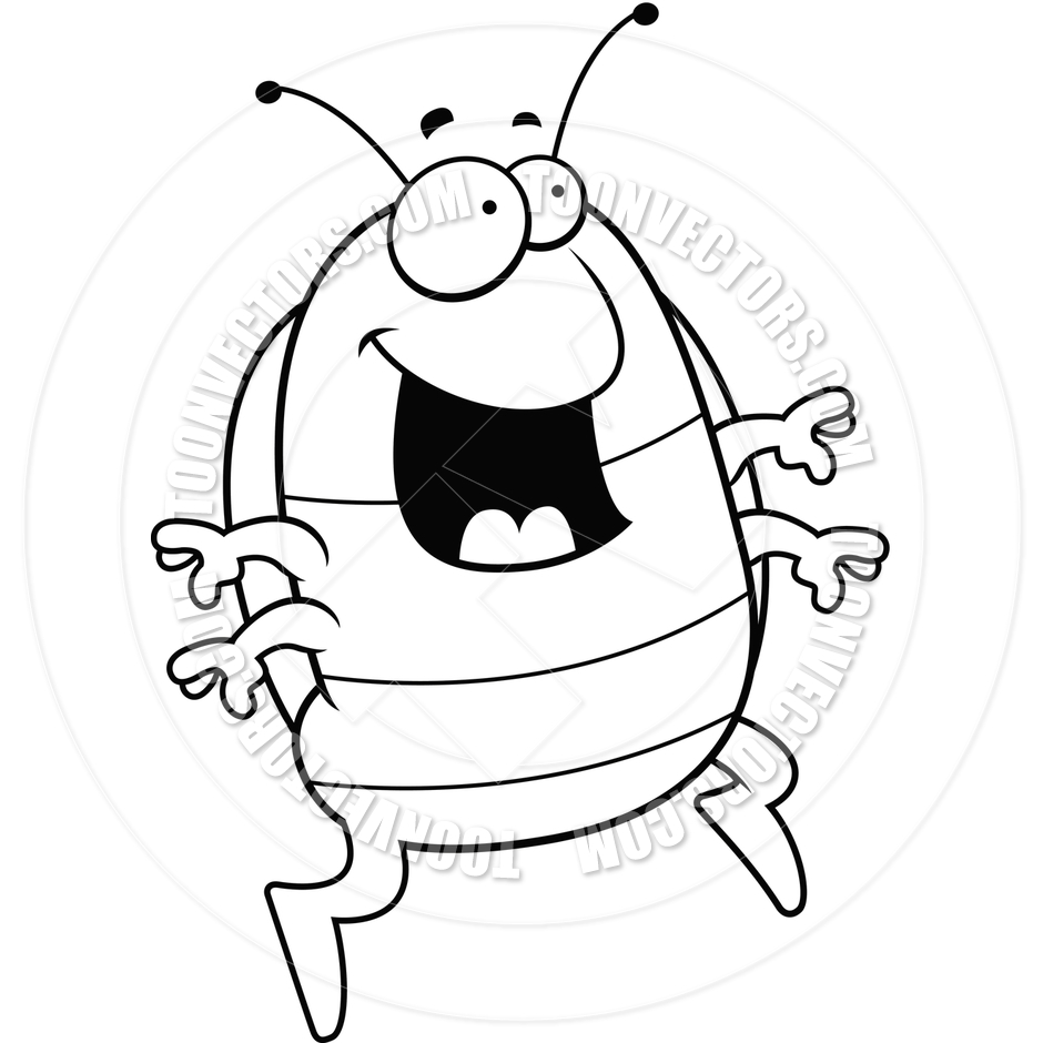 Beetle clipart black and white: Cartoon Pill Bug Jumping