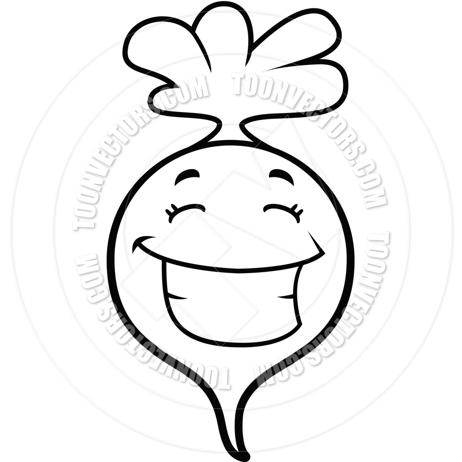 Radish clipart: Cartoon Radish Grinning (Black