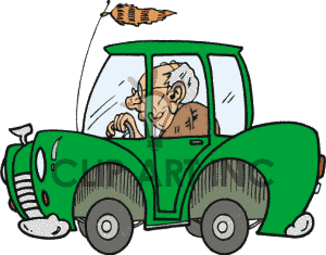 Riding in car clipart: cartoon senior driving a green