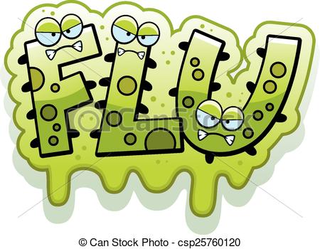 Flu clipart: Cartoon Slimy Flu Bug Text - A