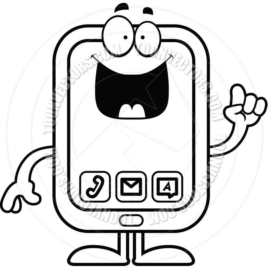 Smartphone clipart black and white: Cartoon Smartphone Idea (Black
