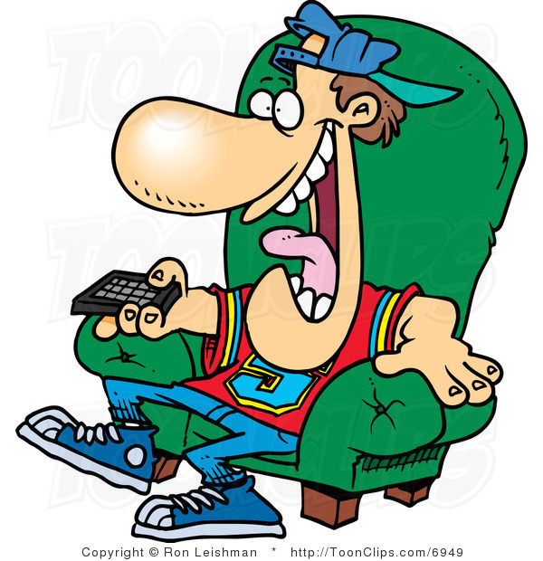 Tv remote cartoon: Cartoon Sports Fan Holding a