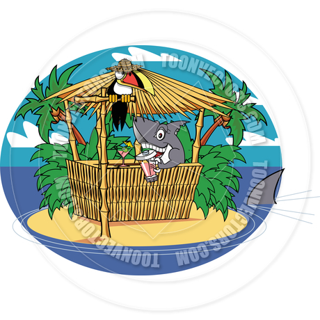 Hut clipart: Cartoon Tiki Hut Shark Vector