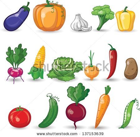 Green vegetables pictures: Cartoon vegetables - stock