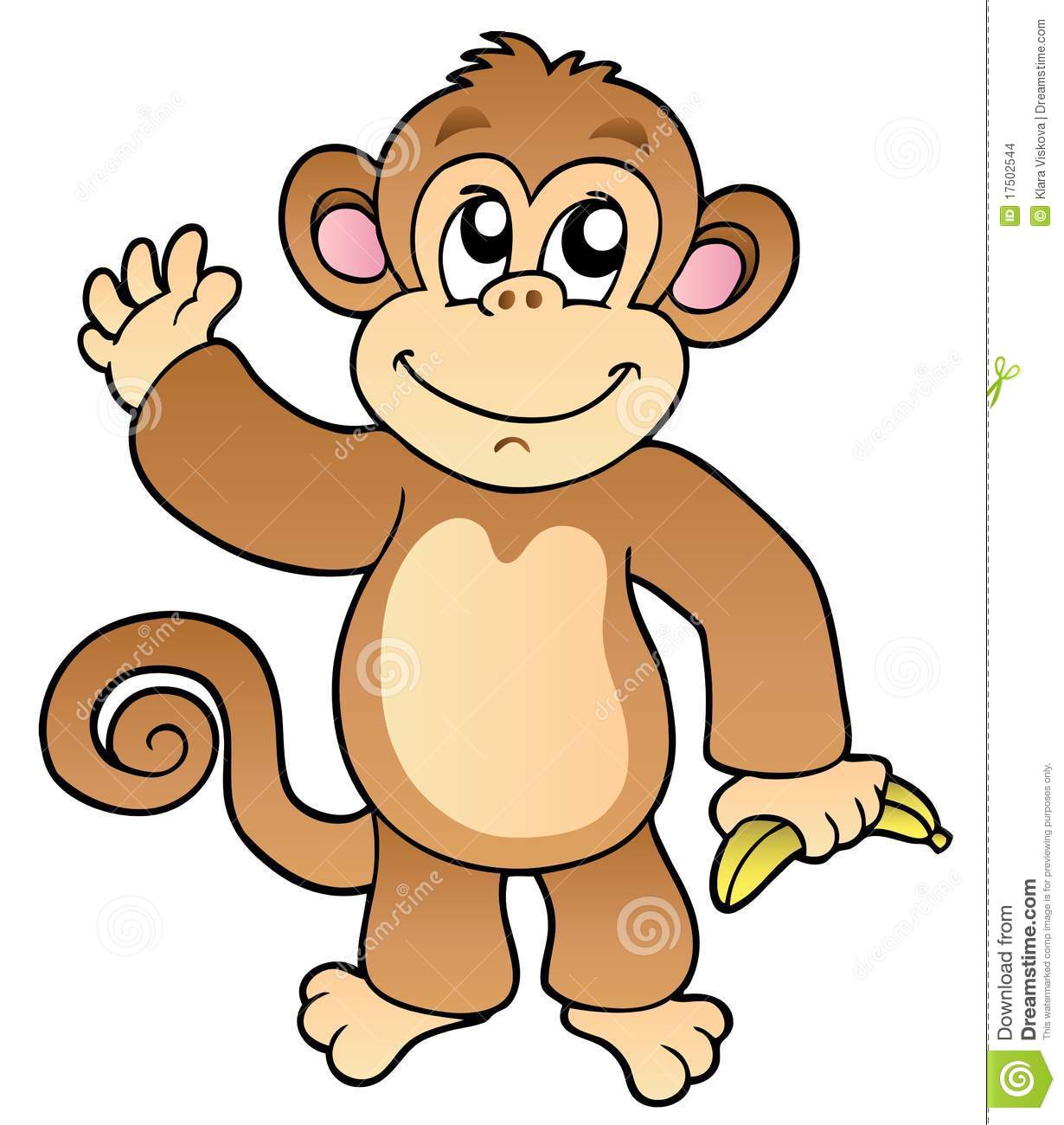 Monkey banana cartoon: Cartoon waving monkey with