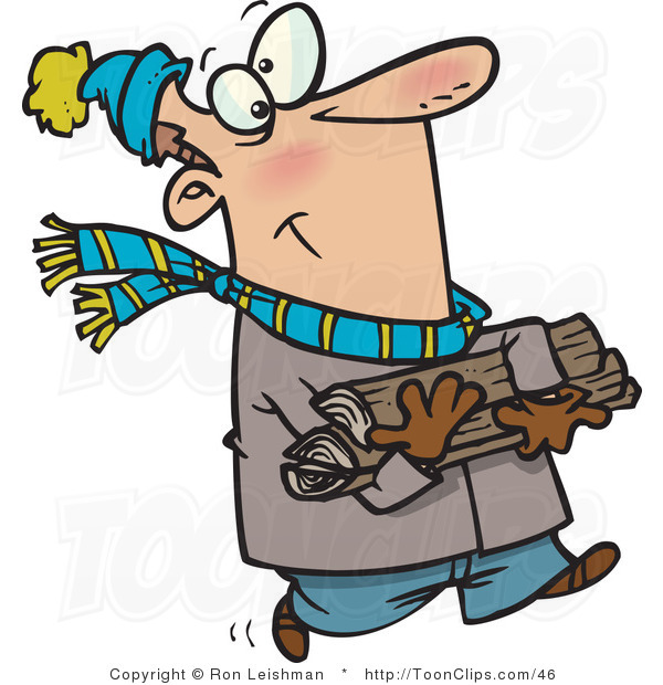 Cartoon fireplace: Cartoon White Guy in Winter