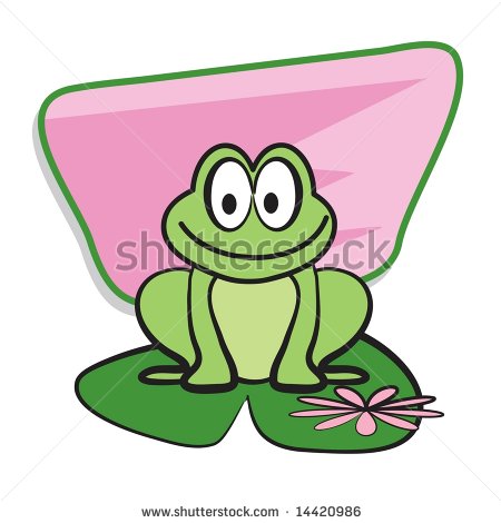 Frog on lily pad clipart: Cartoony frog on lily pad with