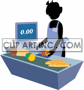 Clerk clipart: Checkout clerk scanning items