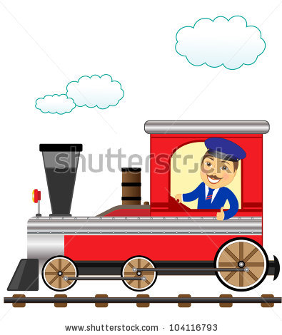 Train engineer cartoon: cheerful cartoon train with
