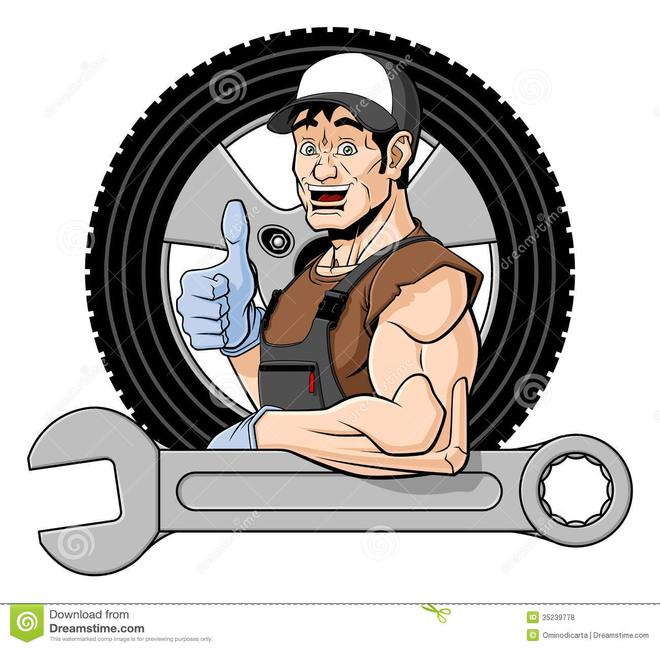 Specialist clipart: Cheerful tire specialist