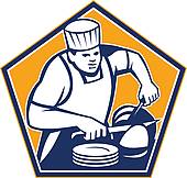Cooked ham clipart: Chef Cook Slicing Ham Retro