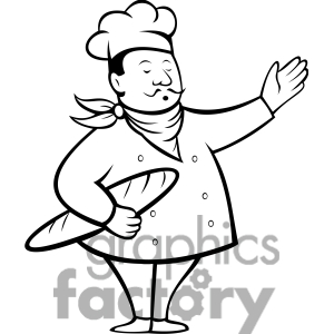 Chef clipart black and white: Chef holding a baguette black