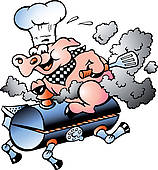 Pig bbq clipart: Chef Pig riding an BBQ barrel