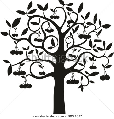 Realistic apple tree drawing: cherry tree - stock vector