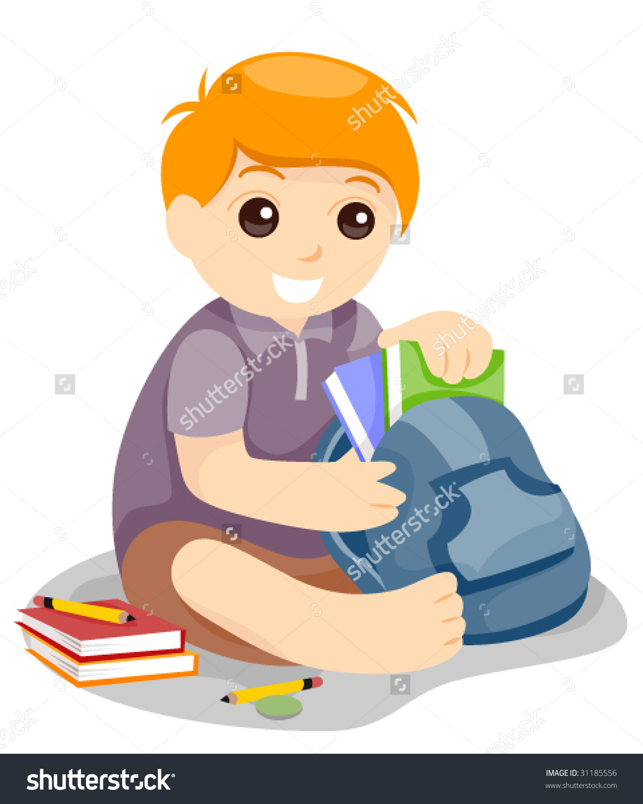 Preparation clipart: Child preparing School Bag