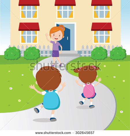 Coming clipart: Children coming home from