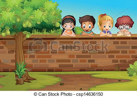 Wall clipart: Children looking down the wall