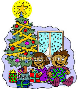 Opening clipart: Children Opening Presents