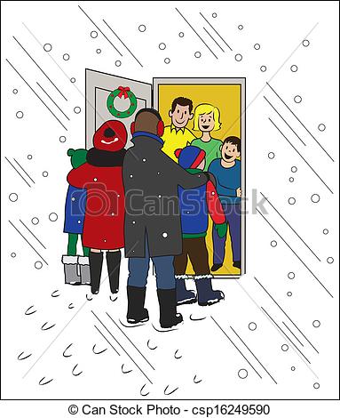 Visit clipart: Christmas Visiting - A family