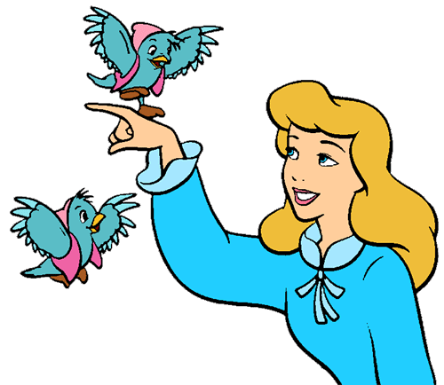 Cinderella dress clipart: Cinderella with mice and bird