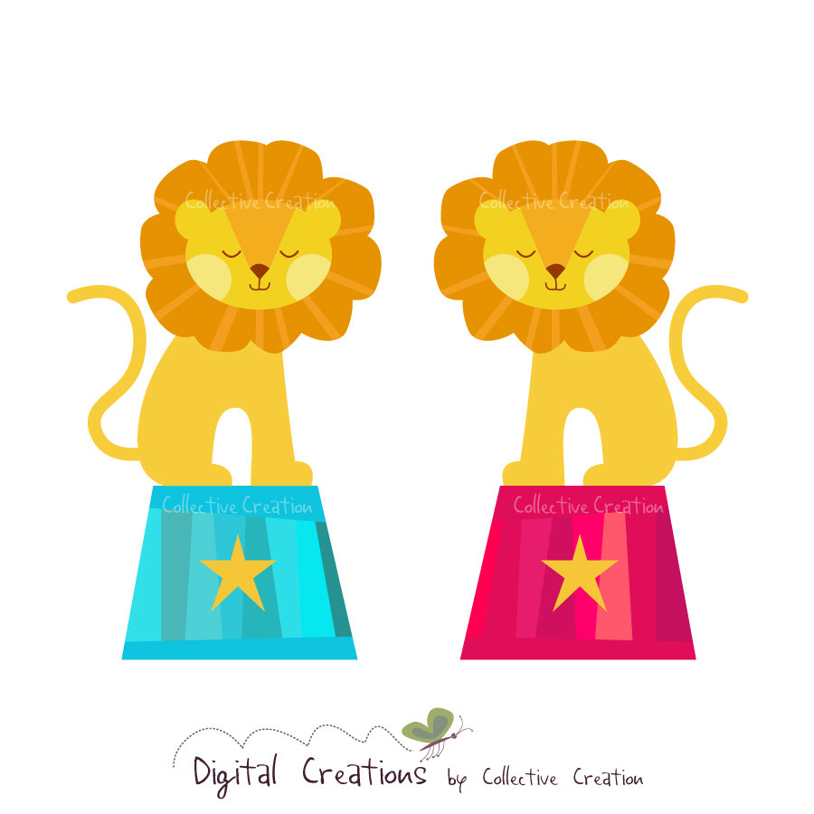 Vintage circus elephant clipart: Circus Lions Digital Clipart