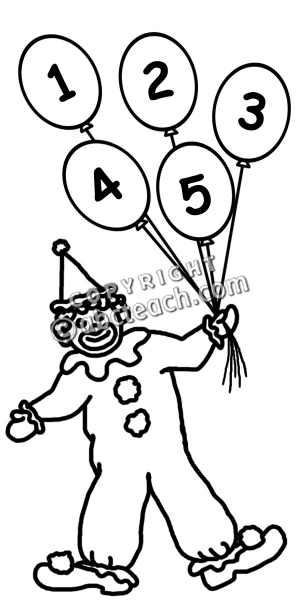 Count clipart: Clip Art: Counting Clown B&W