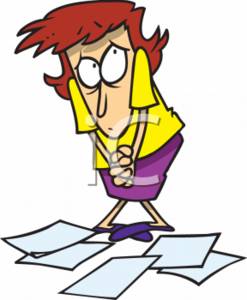 Assistant clipart: Clip art image of a cowering