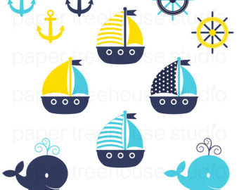Baby shower whale clipart: Clip Art Set - Sailboats,