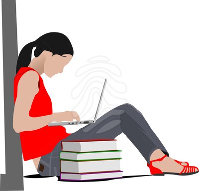 Laptop back clipart: Clip art: Sitting girl with