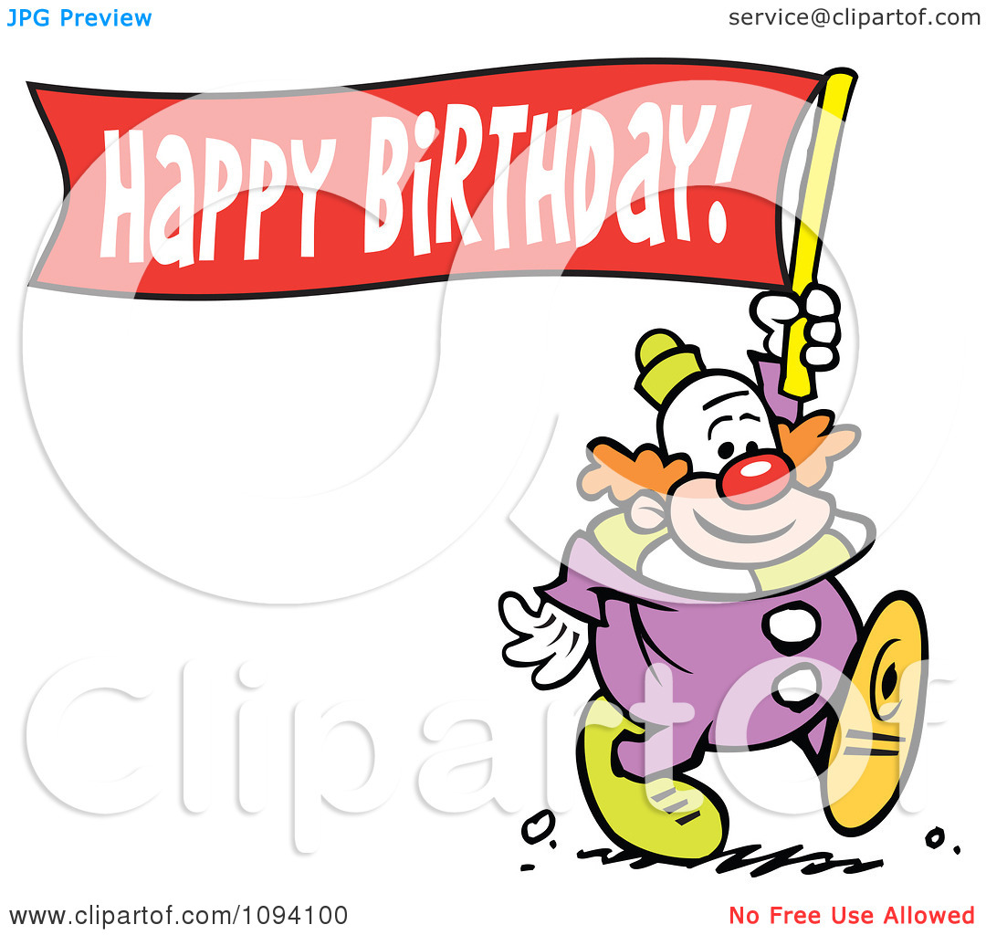 Happy birthday banner clipart: Clipart Clown Carrying A Happy