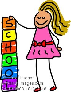 Kids playing blocks clipart: Clipart Illustration of a