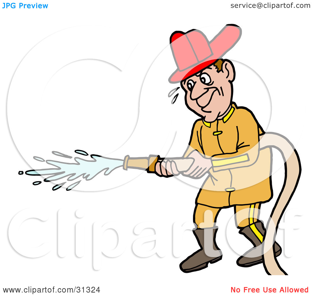 Firefighter hose clipart: Clipart Illustration of a Male