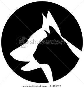 Dog and cat clip art black and white: Clipart Image: A Silhouette of