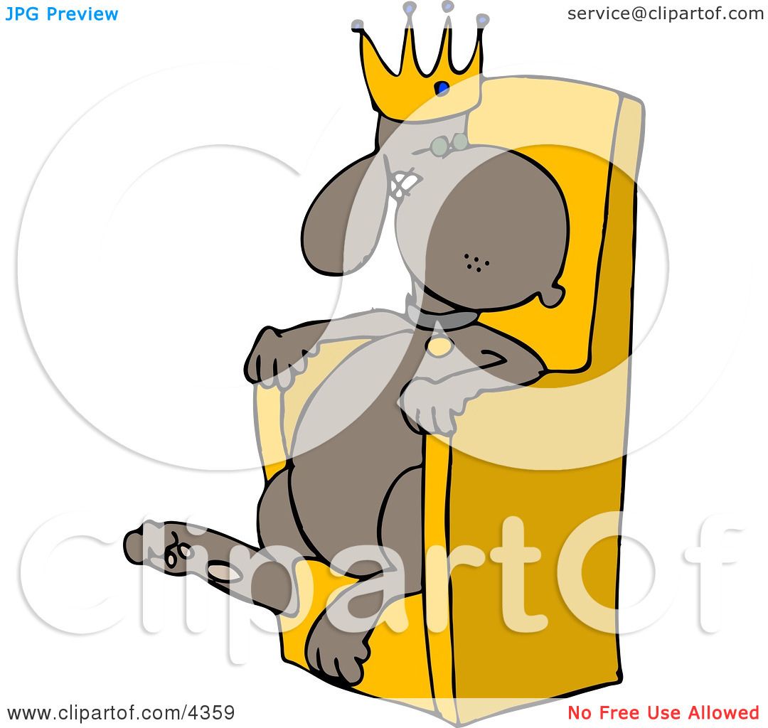King sitting on throne clipart: Clipart of a king dog wearing