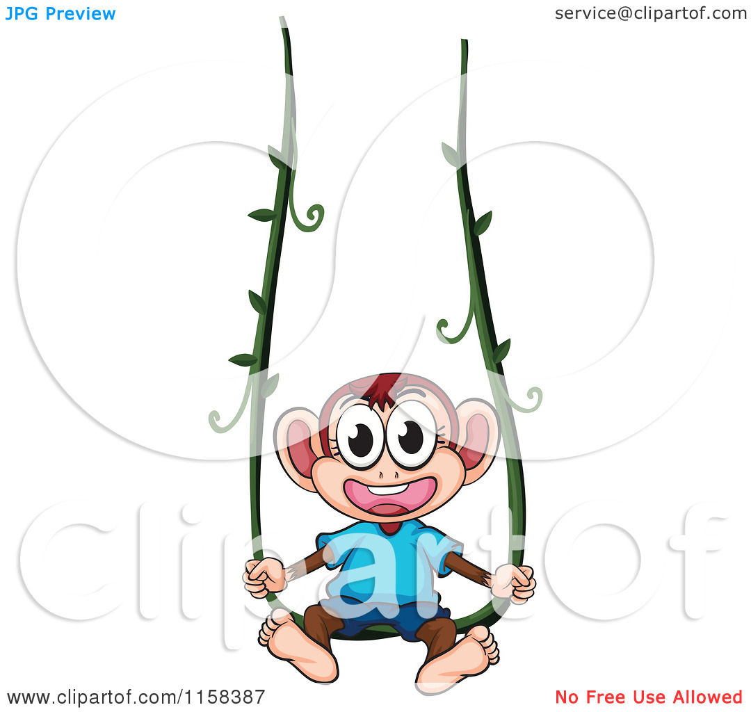 Swinging monkey clipart black and white: Clipart of a Monkey Swinging