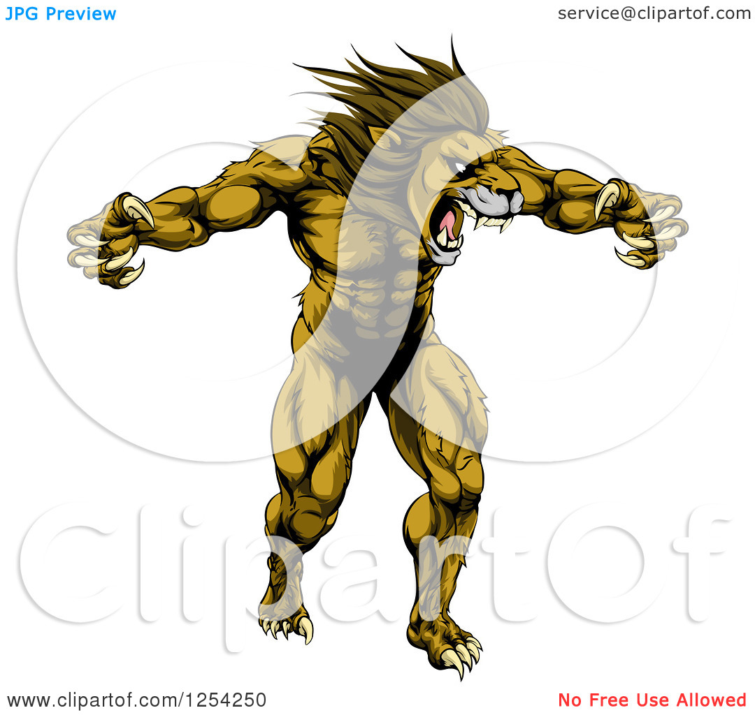 Fierce lion clipart: Clipart Of A Muscular Angry