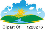 Winding river clipart: Clipart Of A Summer Sun Over