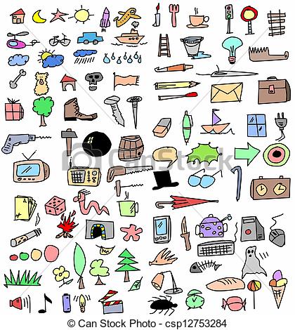 Object clipart: color hand drawn objects -
