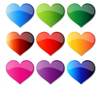 Orange heart clipart: Colorful Glass Hearts