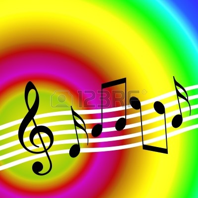 Colorful musical notes symbols: Colorful music background with
