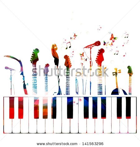 Christmas music notes background: Colorful music instruments