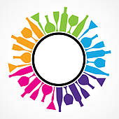 Winery clipart: Colorful wine bottles and
