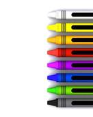 Horizontal crayon clipart: coloured childrens wax crayons